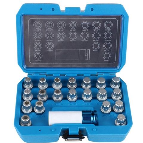 21pcs पहिया विरोधी चोरी ताला पीछे पीछे फिरना नट्स भाड़ पदच्युत सॉकेट उपकरण सेट